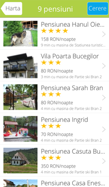 Navighezi pe harta in locul unde vrei sa mergi sau vezi pensiuni si obiective de langa tine, citesti comentarii, vezi preturi, rezervi direct din app, ceri oferte pensiunilor, suni, iti aratam ruta pana acolo... ce mai, ai toate conditiile.