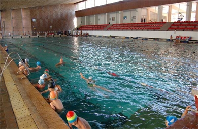 In interiorul bazei se gaseste cea mai moderna piscina din oras, cu o dimensiune de 22/9 m si adancime cuprinsa intre 1,20 m si 1,80 m. Incaperea piscinei este termostata la 30 grade, iar piscina are