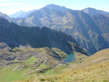 Cabana Podragu : Cabana Podragu - poteca de creasta 500m - dr. - sub Curmatura Piscul Podragului - Lac Podragel