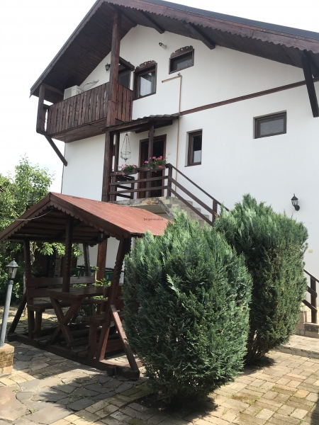 Dispune de loc de joaca pentru copii, bar, parcare, curte cu loc pentru gratar si foisor, living cu televizor.