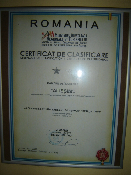 Alissim este o unitate de cazare clasificata de ministerul turismului cu 2 stele superior.