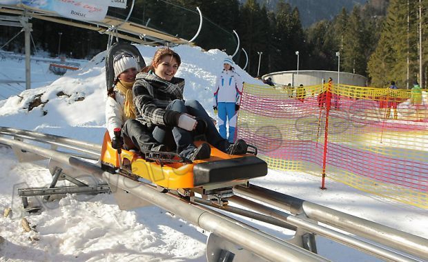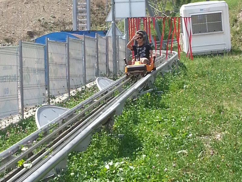 Instalatia pe sine are o jumatate de kilometru lungime,iar sania,cu sistem de franare automata,poate atinge chiar si 40 de km pe ora,iar pe tot parcursul traseului cei dornici de distractie sunt asigurati cu o centura.