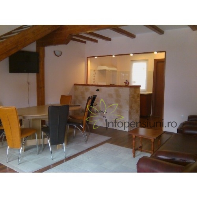 Ai la dispozitie doua dormitoare, 2 bai si living cu bar (bucatarie deschisa) unde te vei simti ca acasa. Beneficiezi de apa calda si caldura non-stop, tv color, cablu tv, internet si nu in ultimul rand loc pentru gratar cu o priveliste superba.