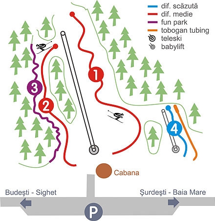 Domeniul schiabil Superski Cavnic – Partiile Roata este situat intre 950m si 1.300m, in Pasul Neteda, intre varfurile Trei Apostoli si Roata, localitatea Cavnic, judetul Maramures
