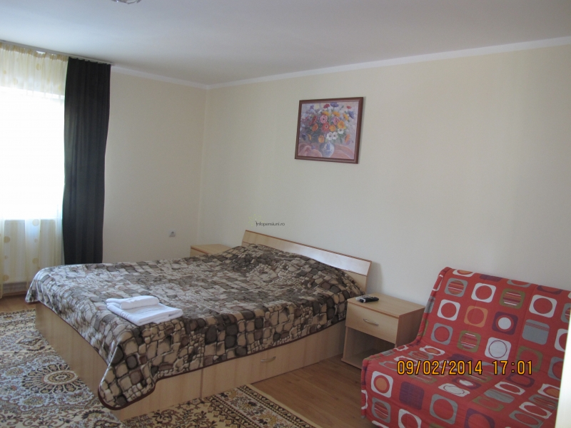 -camere mobilate functional (cu pat matrimonial, TV prin satelit si acces gratuit la internet - WIFI), 2 bai comune - cu dus si articole de toaletă gratuite.