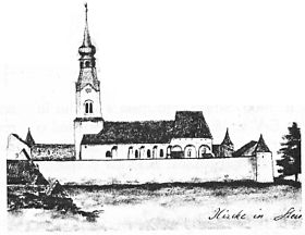 In anul 1845 biserica a fost extinsa spre vest, ridicandu-se un nou turn cu clopot. Incinta din jurul bisericii are forma de patrulater cu turnuri in colturi.