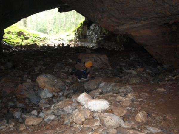 Intrarea in pestera are 10 m latime si 4 metri inaltime si este la baza unui perete