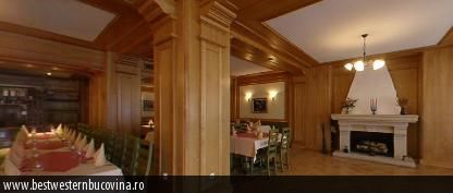 Aflat in orasul Gura Humorului, la 5 km distanta de manastirile Voronet si Humor, inconjurat de domoalele obcini, hotelul Best Western Bucovina - Club de Munte va asteapta sa cunoasteti vechi obiceiuri pastrate doar aici. Hotelul, singurul din zona care se ridica la standardele internationale, este o primitoare "Casa de Bucovina" in care ospitalitatea locului nu se dezminte. Hotelul pune la dispozitia clientilor 2 restaurante cu o capacitate de 250 locuri. Doar aici puteti servi preparate specifice Bucovinei, precum si bucate din bucataria internationala. Restaurantul Best Western este alegerea ideala pentru a face cunostinta cu unele dintre cele mai delicioase preparate din nordul tarii. Adresa: Piata Republicii nr. 18, 725300 Gura Humorului, jud. Suceava Telefon: +40-230-207000; Fax: +40-230-207001 Email: rezervari@bestwesternbucovina.ro Website: www.bestwesternbucovina.ro
