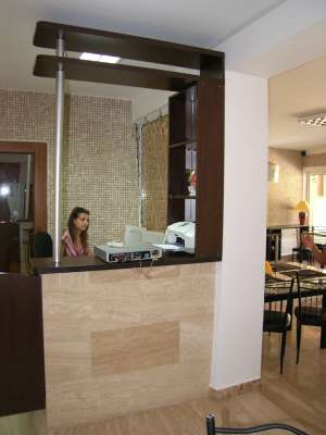 La parter, livingul spatios si cu cele mai moderne dotari va intampina intr-o ambianta placuta oferindu-va servicii de bun gust si rafinament.