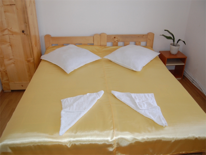 »Camere cu doua sau trei paturi, dotate cu baie proprie, televizor si frigider;
