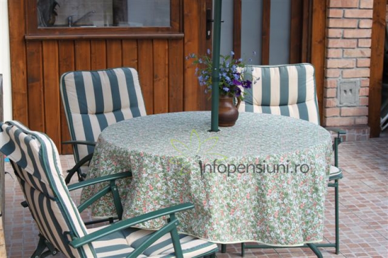 Din curtea plina cu trandafiri, atunci cand veti lua masa sub bolta de vita de vie, sau pe terasa de la etaj, auziti fosnetul vantului ce trece printre crengile brazilor aflati la nici 40m distanta, sau ciripitul pasarilor printre crengi.