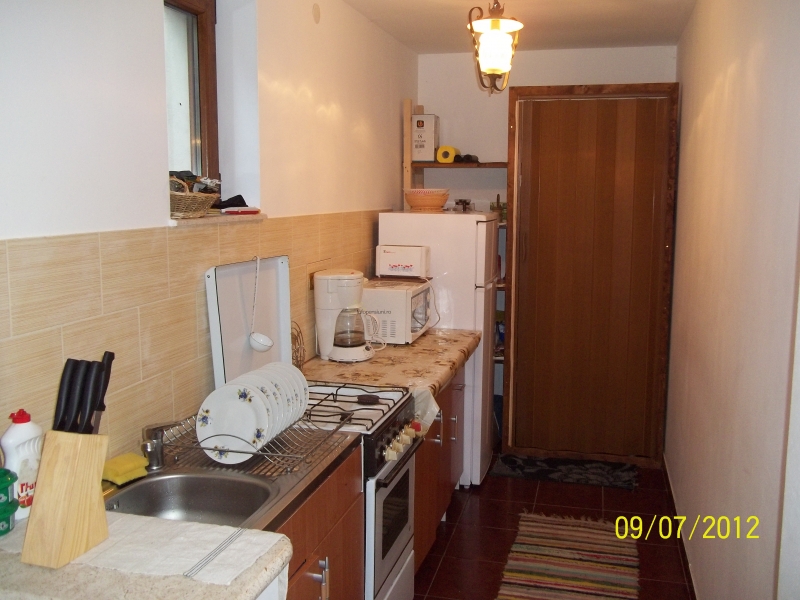 - bucatarie (dotata cu frigider, aragaz, cuptor cu microunde, gratar, ceaun si vesela necesara)