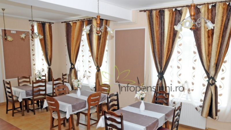 In sala de mese cu o capacitate de 30 persoane se poate servi micul dejun, pranzul sau cina (in regim catering) - variante la alegere in functie de tipul cazarii.