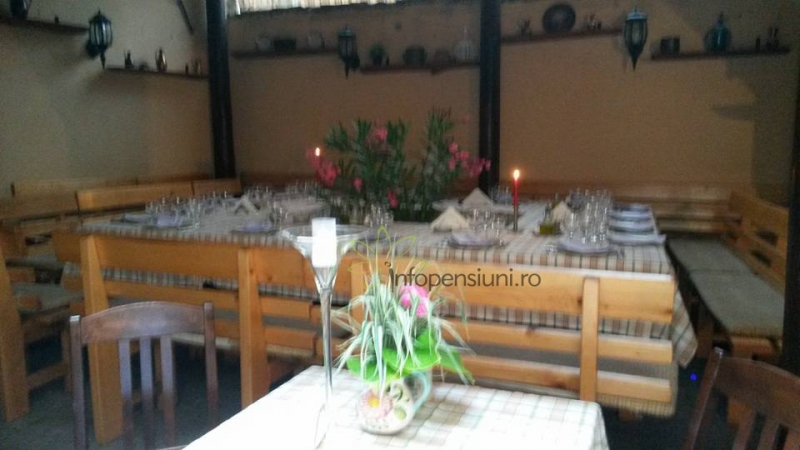 Intr-o atmosfera clasica si eleganta puteti servi masa la restaurantul propriu cu capacitate de 40 de locuri sau in foisorul special amenajat in curtea interioara. Bucataria cu specific romanesc sau international satisface gusturile oricarui turist aflat in tranzit sau cazat.