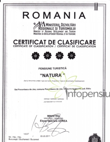 Pensiunea Natura este amplasata pe un platou de unde se vad muntii Fagarasului in toata splendoarea lor. Locatie excelenta, constructie noua, o adevarata oaza de liniste. Capacitate 12 camere