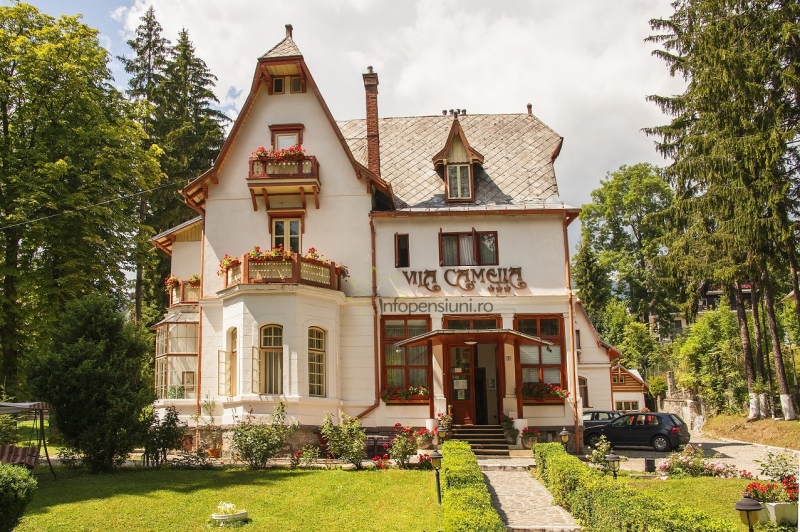 Vila Camelia, proiectata in stil austriaco-german de acelasi maestru care a construit si castelul "Peles", simbol reprezentativ al regalitatii romanesti, este situata pe strada Spatar Mihail Cantacuzino, aproape de vestita Manastire Sinaia si a fost realizata in anul 1884. Restaurata, reconditionata si reamenajata cu ambitie, pricepere si incontestabil bun gust, vila cocheta se anunta inca de afara a fi o adevarata oaza de relaxare si liniste.