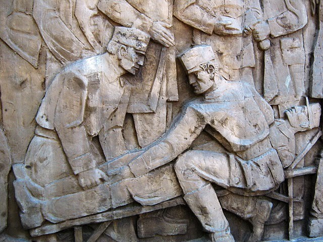 Partile laterale ale monumentului contin basoreliefuri din bronz, ilustrand trecerea armatei romane peste Dunare, atacul de la Plevna, precum si scene in care sunt reprezentati eroi raniti si ingrijiti de catre medicul general Carol Davila.